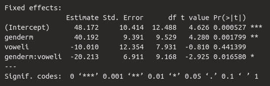 ## df.word: db ~ gender * vowel + (1 + vowel | subject)